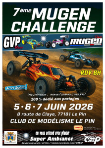 Nous sommes heureux de vous retrouver pour cette 7ème édition de la Mugen Seiki Challenge Cet événement représente toute la philosophie de notre passion : l’Esprit de la course, une Ambiance 100% Fun et 100% MUGEN SEIKI ! L’objectif est de se faire plaisir sur la piste et de partager un moment convivial et familial à la GVP RACING !!!!