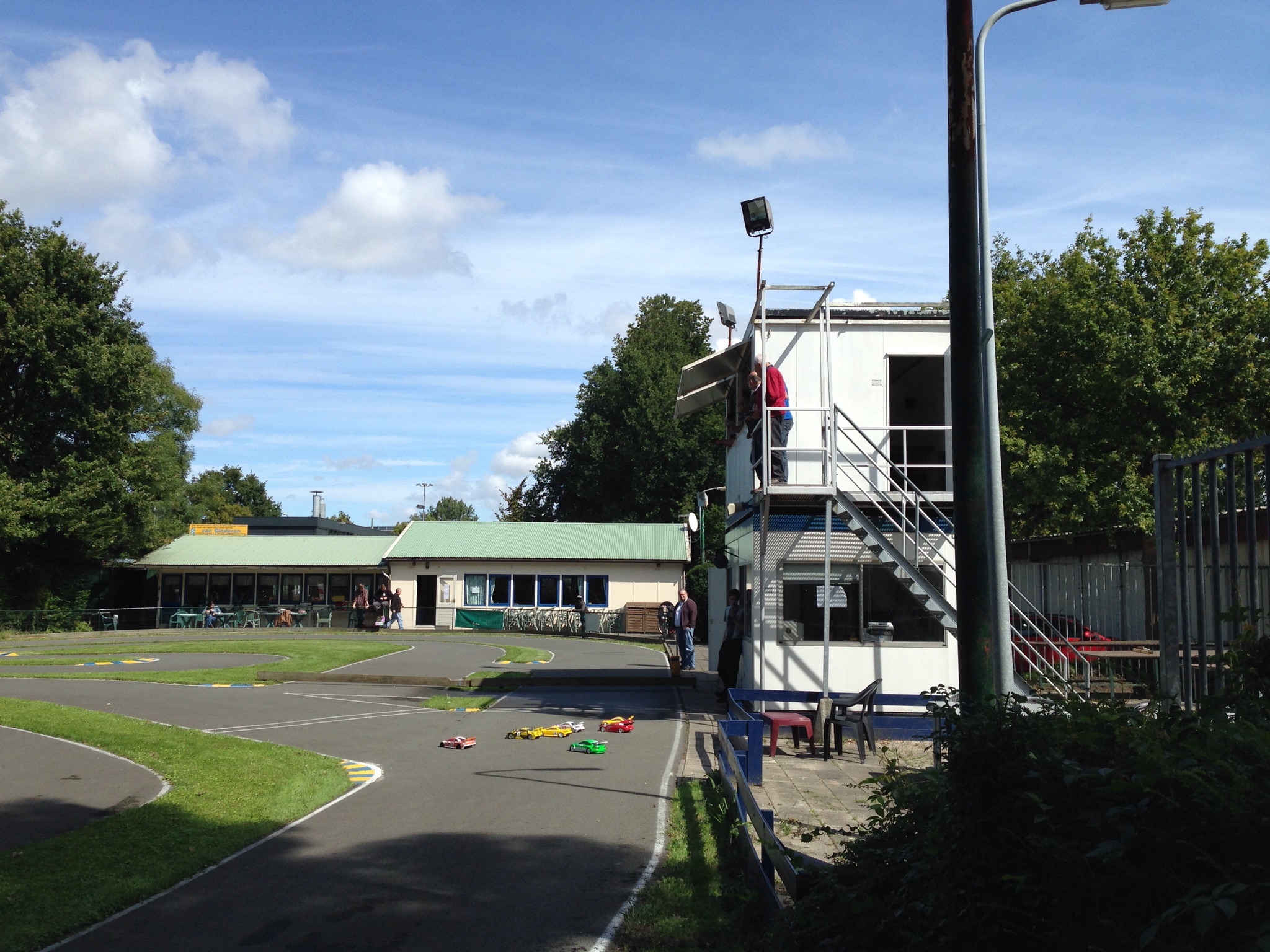 The track consist of the original oval track and a challenging infield. A real drivers track with lots of overtaking opportunities if you dare. The facility holds more than enough space to service our car(s) and charge your batteries.